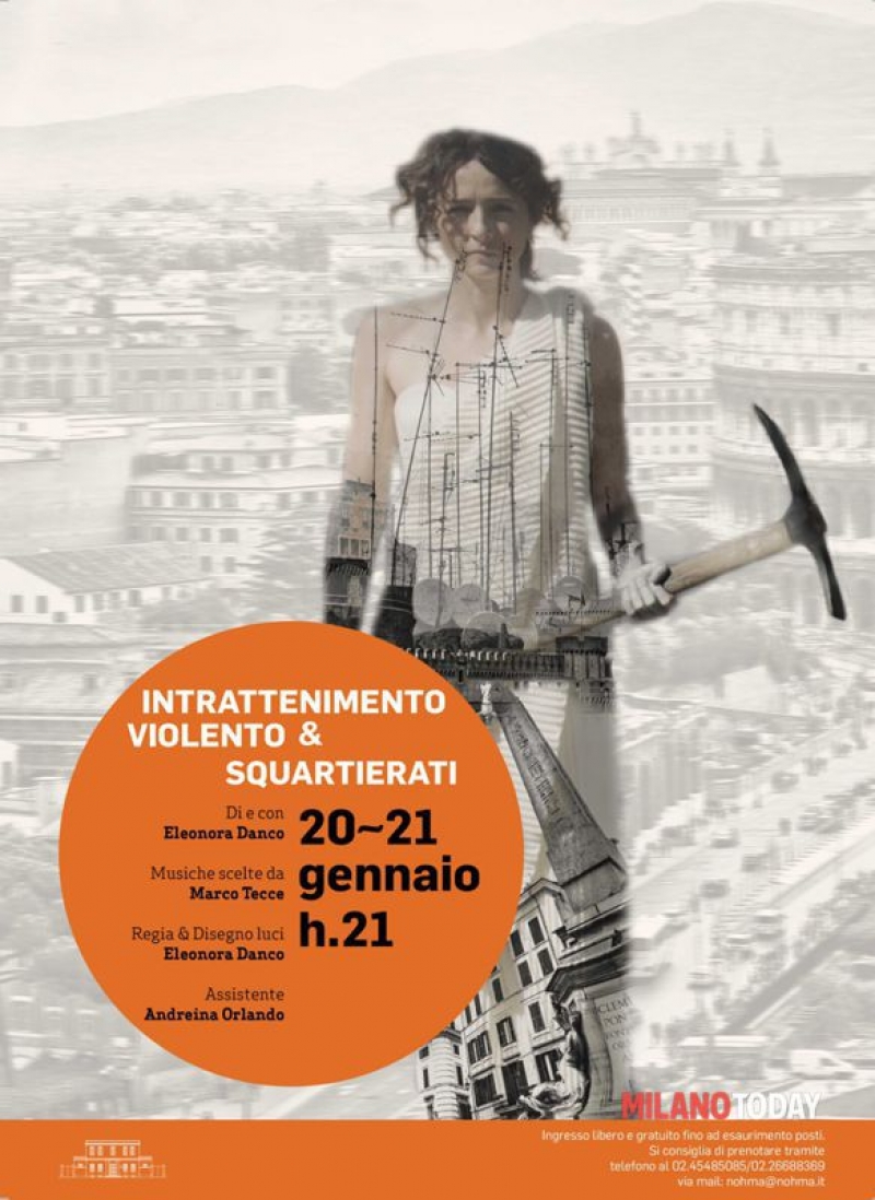 Intrattenimento Violento e Squartierati: doppio monologo della torrenziale Eleonora in scena allo Spazio Teatro NO’HMA (20 e 21 gennaio): un rap di desolazione in un dialetto romanesco che spazia dal pasoliniano al poetico gaddiano surreale. Ahò ce sta ‘a Danco a ‘sto teatro de Milano che fa ‘sta tiratona disperata de gente che sta mmale stammalesoffresincazzagridasputavomitaestrepita tutto…