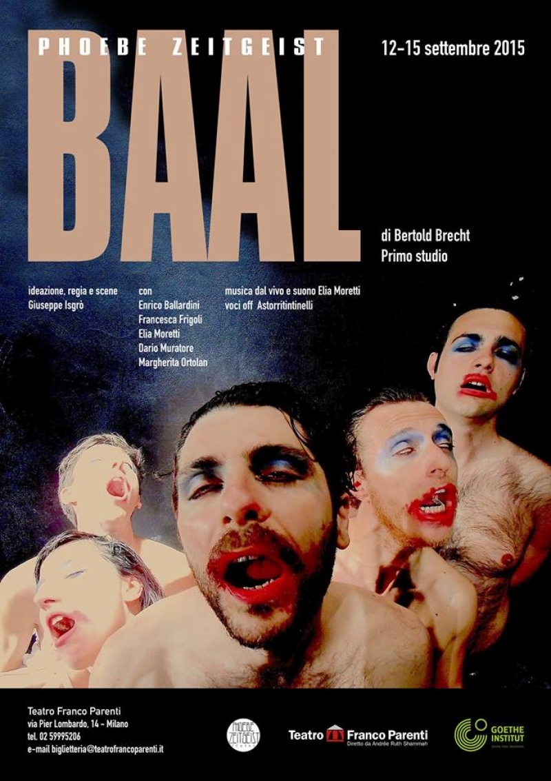 Nell’ambito della rassegna Brecht Con Altri Occhi al Franco Parenti, Phoebe Zeitgeist rielabora la prima opera del drammaturgo tedesco in uno straniante vaudeville della degradazione con notevoli musiche dal vivo. Baal è una divinità fenicia che si ritrova poi fra i Cananei dell’Antico Testamento, a Cartagine, in Egitto, forse evolve nella figura di Crono nella mitologia…